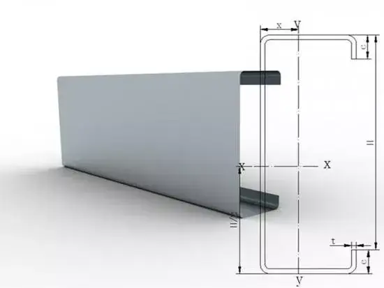 C Purlin е лесен челичен материјал обработен во пресек во облик на C преку ладно свиткување. Тој првенствено се користи како секундарен носечки член во челични конструкции, познати како огради, за поддршка на покривните панели и ѕидните панели (како што се обоени челични плочи и сендвич панели), издржуваат товари од ветер и снег, како и само-тежина, и пренесување на товарите на главната челична рамка. Неговиот отворен дизајн го олеснува фиксирањето на завртките и вметнувањето на цевките, што го прави еден од најекономичните и најшироко користените профили во зградите со лесни челични конструкции. Погоден е за проекти за челични конструкции како што се индустриски постројки, магацини и вили од лесен челик.