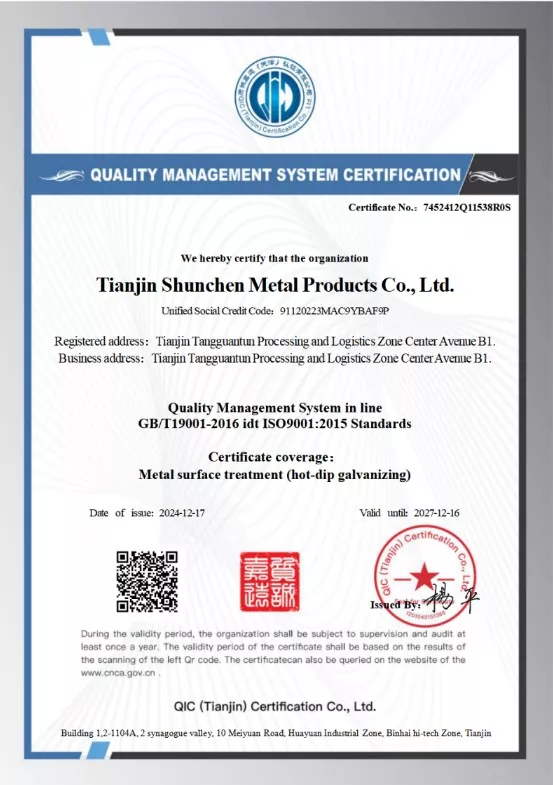 Високото раководство на Shunchen има повеќе од 20 години искуство и технологија во производството на топло поцинкување.