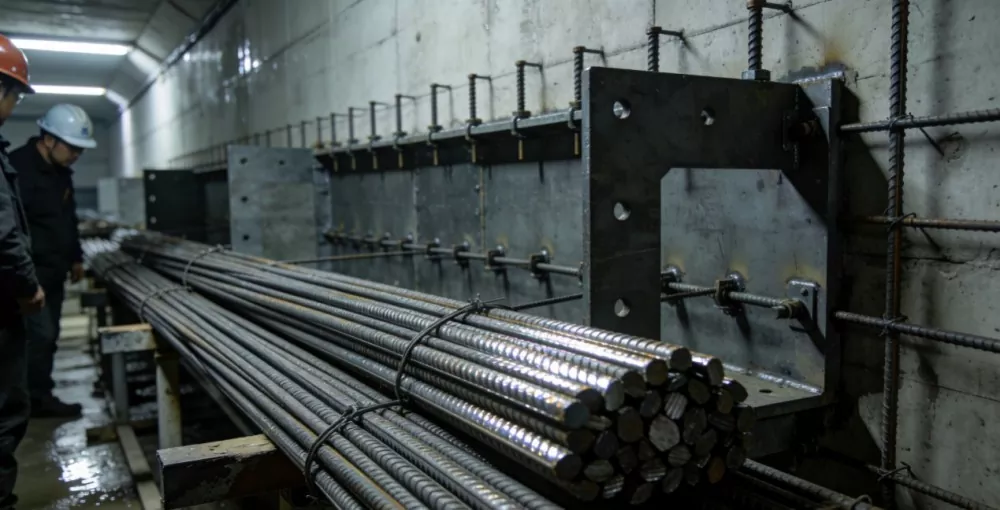 Типичен случај: Проект за владина галерија на цевки во одреден град во Тијанџин, приспособен челик со навој со висока цврстина HRB500 (дијаметар 10 mm), со употреба од 190 тони, цврстина на отпуштање ≥ 500 MPa и цврстина на истегнување ≥ 630 MPa. Претходно вградено со приспособени вградени плочи, третман за заштита на површината прилагоден на подземни влажни услови, ефикасно ја подобрува отпорноста на пукнатини на структурите на галериите на цевките, успешно го поминува општинското инженерско прифаќање и обезбедува долгорочно безбедно работење.