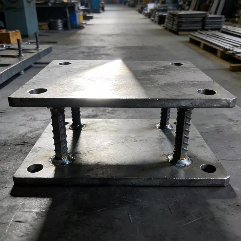 Вградените прицврстувачки плочи, како клучни конектори за јадро претходно вградени во бетонски конструкции, користат Q235B и Q345B челични плочи со висока цврстина како цврст основен материјал. Тие се подложуваат на прецизно сечење со CNC, прецизно дупчење и сеопфатен антикорозивен третман, овозможувајќи совршено заварување со челични шипки за прицврстување со навој за да се формира стабилно и сигурно комплетно сидро. Тие можат ефективно да ги поднесат оптоварувањата на надворешните компоненти како што се системи за инсталација на PV, челични конструкции и тешка опрема, постигнувајќи униформа пренос на сила и стабилна врска, со што се заштитува безбедноста на градежните конструкции.